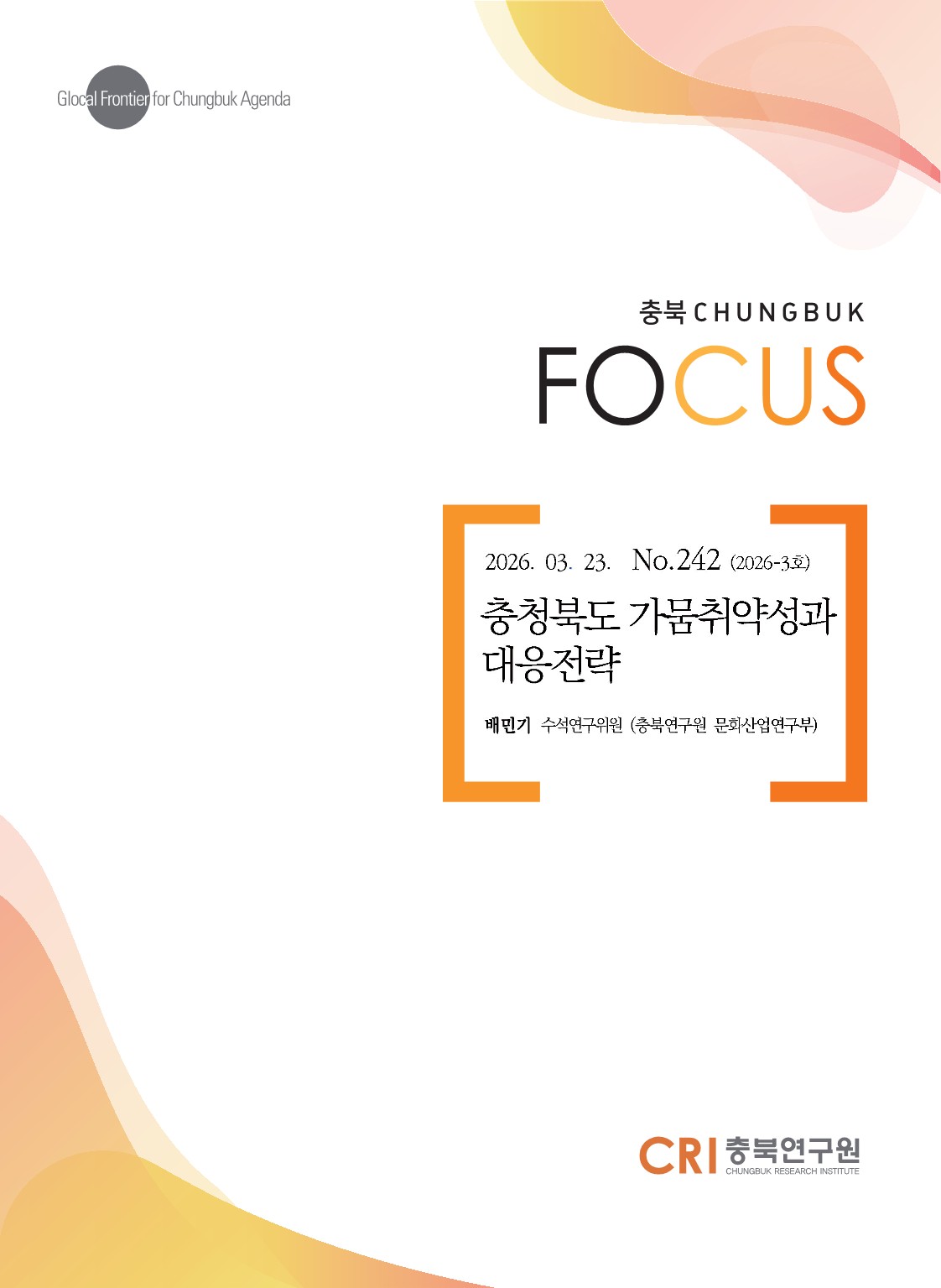 충북 연구원들이 각 분야의 전문 연구보고서를 제공합니다.
