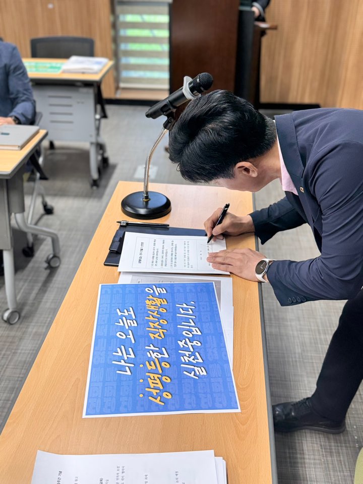 ◎ 일 시 : 2025.09.01.(월) *월례 조회시 진행 ◎ 장 소 : 충북연구원 1층 대회의실 ◎ 주 최 : 충북연구원/충북연구원 여직원협의회 ◎ 내 용 : - 기관장 주관 "성희롱 없는 조직 만들기" 선언문 낭독 - 성희롱 예방 및 근절 동참 인증사진 촬영(피켓활용) - 연구원 홈페이지 게시, SNS 및 언론보도 등 대외 홍보 |