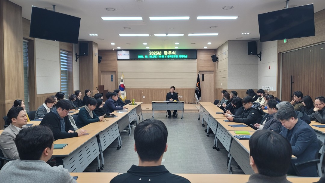 ◎ 일 시 : 2025.12.30.(화) 10:30 ~ ◎ 장 소 : 충북연구원 1층 대회의실 ◎ 내 용 : 2025년 종무식 및 시상 |