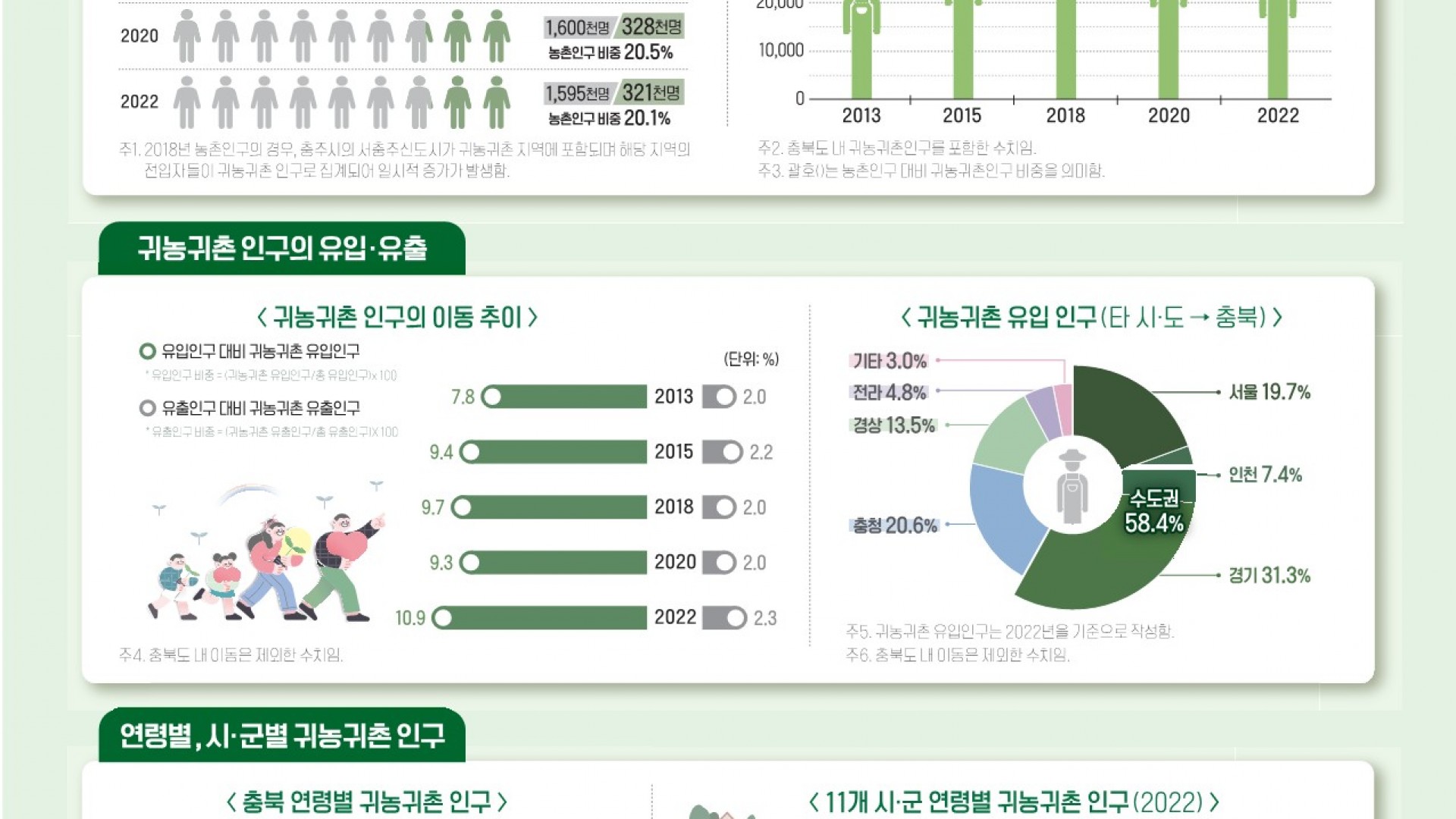 Search Sort by date Sort by views Title Contents Title+Contents Writer Search A total of 22 posts List of posts 2024-02호 인포그래픽스 (통권23호) - 충북 고속도로 및 진입,진출 현황 2024-03-28Number of images : 1 2024-01호 인포그래픽스 (통권22호) - 충북의 귀농귀촌 인구 2024-02-21Number of images : 1 2023-05호 인포그래픽스 (통권21호) - 충북의 인재들 어디로 가나 2023-10-30Number of images : 1 2023-04호 인포그래픽스 (통권20호) - 충북 청년들이 ‘원하는’ 일자리는 2023-08-28Number of images : 1 2023-03호 인포그래픽스(통권19호) - 충청북도의 의료서비스는? 2023-06-01Number of images : 1 2023-02호 인포그래픽스(통권18호) - 충청북도 인구현황 2023-04-05Number of images : 1 2023-01호 인포그래픽스(통권17호) - 『2022년 사회조사』에 나타난 충북도민의 만족도 2023-02-23Number of images : 1 처음 페이지 이전 페이지 1 2
