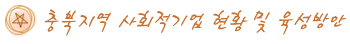 º» ¿¬±¸ÀÇ ¸ñÀûÀº ÃæºÏÁö¿ª »çȸÀû±â¾÷ ÇöȲ ¹× °æÀï·Â ¼öÁØ¿¡ ´ëÇÑ Áø´Ü°ú Á¤Ã¥¼ö¿äÁ¶»ç ºÐ¼®°á°ú¸¦ Åä´ë·Î »çȸÀû±â¾÷ À°¼º¹æÇâÀ» Á¦½ÃÇÔÀ¸·Î½á ¼¹Î ÀÏÀÚ¸® âÃâ ¹× »çȸ¼ºñ½º È®´ë¸¦ ÅëÇÑ °æÁ¦°øµ¿Ã¼ ±¸ÃàÀÇ Àü·«Àû ¹æ¾ÈÀ» Á¦½ÃÇÏ´Â °ÍÀÌ´Ù.