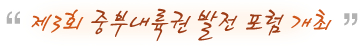 À̹ø Á¦ 3ȸ Áߺγ»·ú±Ç ¹ßÀüÆ÷·³Àº Áߺγ»·ú±Ç ¹ßÀüÆ÷·³(ÃæºÏ°³¹ß¿¬±¸¿ø¡¤°¿ø¹ßÀü¿¬±¸¿ø¡¤´ë±¸°æºÏ¿¬±¸¿ø) ÁÖÃÖ·Î ÃæºÏ°³¹ß¿¬±¸¿øÀÌ ÁÖ°üÇÏ¿´À¸¸ç, Áߺγ»·ú±Ç 3µµÀÎ ÃæÃ»ºÏµµ¡¤°¿øµµ¡¤°æ»óºÏµµ°¡ ÈÄ¿øÀ» ÇÏ¿´´Ù.