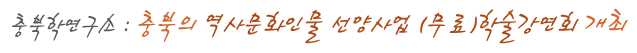 ¿ø ºÎ¼³ ÃæºÏÇבּ¸¼Ò¿¡¼´Â ¸Å³â ÃæºÏÀÇ ¿ª»ç¹®ÈÀι°À» ¼±Á¤ÇØ ±×µéÀÇ »îÀ» ±â¸®´Â »ç¾÷À» ÃßÁøÇϰí ÀÖ½À´Ï´Ù. À̸¦ À§ÇØ Àι° ¹ß±¼ ¹× ÀڷḦ ¼öÁýÇϰí Àι°¿¡ ´ëÇÑ ½ÉÆ÷Áö¾ö°ú ÆòÀüÀ» ¹ß°£ÇÏ´Â µî Çмú¿¬±¸»ç¾÷À» ÁøÇàÇϰí ÀÖ½À´Ï´Ù.