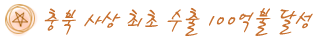 ¡¡ÃæÃ»ºÏµµ´Â 1896³â Á¤µµ ÀÌ·¡ »ç»ó ÃÖÃÊ·Î 12¿ù 22ÀÏ¿¡ ¼öÃâ 100¾ïºÒÀ» ´Þ¼ºÇÏ°Ô µÈ´Ù. À̸¦ ±â³äÇϱâ À§ÇØ Ã»ÁÖ´ë±³ ¿· ºÐ¼ö´ë ÁÖº¯¿¡ °¡·Î 1.9m, ¼¼·Î 3m, ³ôÀÌ 10m Å©±âÀÇ ±â³äžÀ» ¼³Ä¡Çϰí Àú³á 5½Ã¿¡´Â À̽ÃÁ¾ µµÁö»ç¿Í ¼öÃâ±â¾÷´ëÇ¥ÀÚ µî 100¿©¸íÀÌ Âü¼®ÇÏ´Â °¡¿îµ¥ Á¡µî½Ä µî ±â³äÇà»ç¸¦ °³ÃÖÇÑ´Ù.