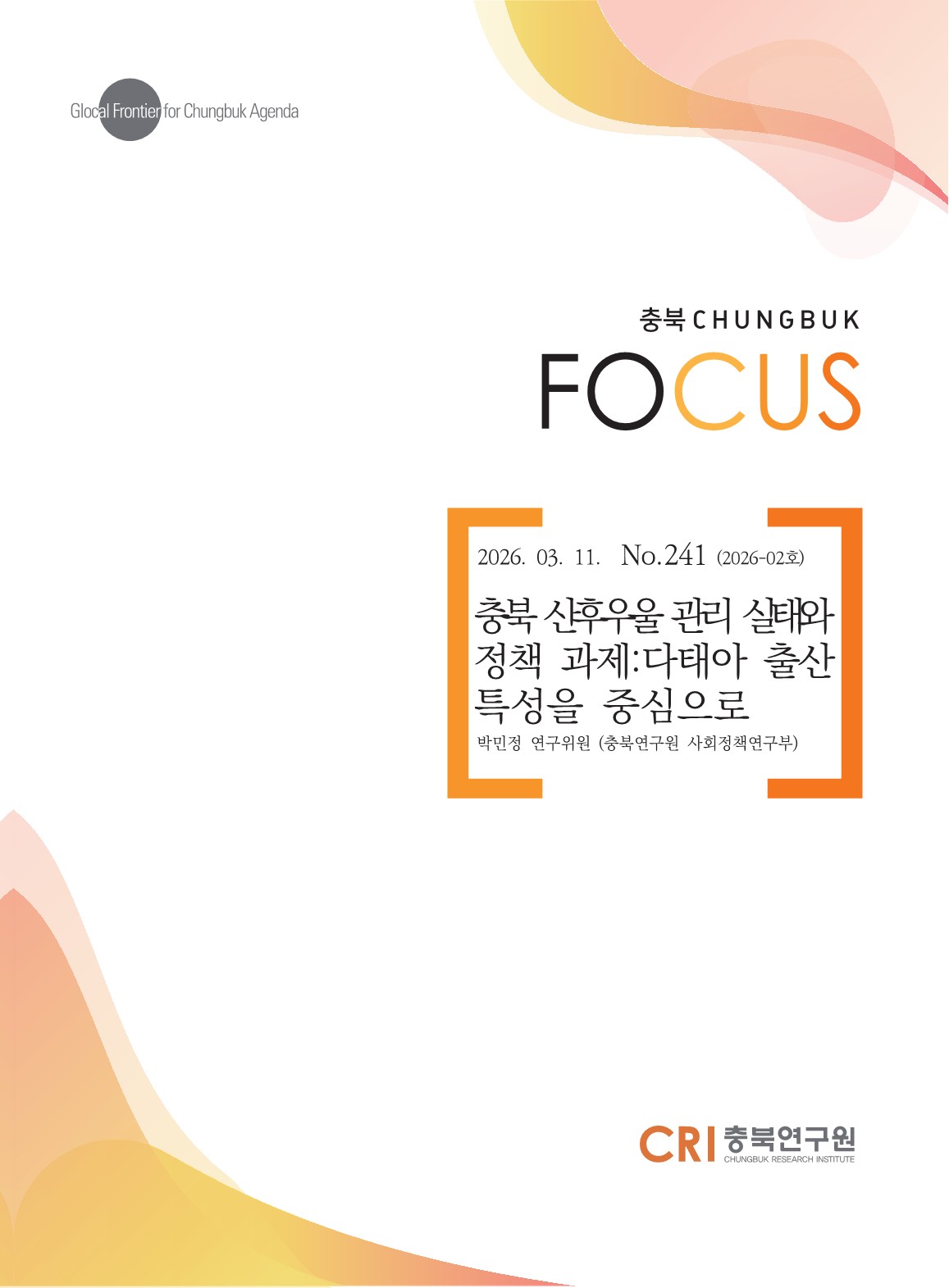 충북 연구원들이 각 분야의 전문 연구보고서를 제공합니다.