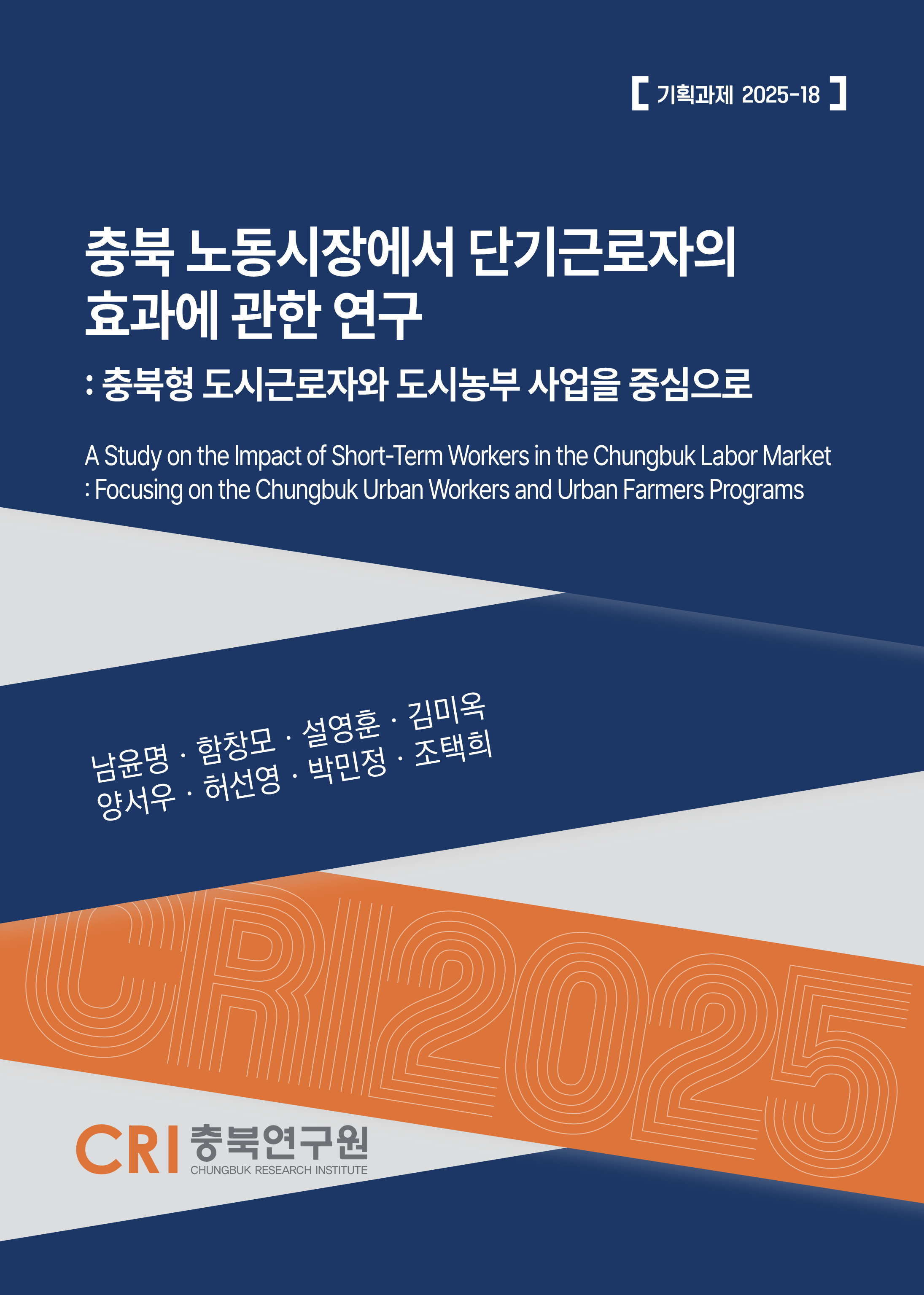 국비사업 및 신규사업 아이템 발굴, 도 현안과제 해결방안 모색 등을 위한 연구과제 입니다. 게시물 검색 등록일순 조회수순 제목연구진 검색 총 117건의 게시물이 있습니다. 2025 2024 2023 2022 2021 2020 2019 2018 2017 2016 게시물 목록 [2025기획-18] 충북 노동시장에서 단기근로자의 효과에 관한 연구 관련키워드 고령화저출산노동력부족문제국내노동시장정책동향글로벌노동시장동향충북형단기근로자사업충북인구·노동시장충북연구원 연구진 : 남윤명, 함창모, 설영훈, 김미옥, 양서우, 허선영, 박민정, 조택희 / 충북연구원 발행일 : 2025.12.31. 조회수 : 60 요약 전 세계적으로 고령화와 저출산으로 인한 노동가능인구 감소가 심화되는 가운데, 특히 고령화로 인 한 노동력 부족 문제가 지역 단위에서 주요 현안으로 대두되고 있다. 충청북도 역시 고령층(65세 이상) 의 경제활동이 높은 반면, 산업 전반의 인력부족률과 빈 일자리율이 전국 최고 수준을 기록하는 등 구 조적 인력난이 지속되고 있다. 이러한 상황에서 충북도는 제조업과 농가의 만성적 인력 부족을 완화하 고, 경제활동을 하지 않는 유휴인력의 노동시장 진입을 촉진하기 위해 『충북형 도시근로자 지원사업』 과 『충북형 도시농부 사업』을 추진해 왔다. 두 사업의 참여 규모는 2023년 대비 2024년에 큰 폭으로 증가했으며, 참여자와 기업·농가 모두에 서 만족도가 향상된 것으로 나타났다. 또한 2024년 실적을 바탕으로 분석한 결과, 도시근로자 지원사 업은 128.4억 원의 최종수요를 창출하여 196.8억 원의 생산유발효과, 117.6억 원의 부가가치유발효 과, 315.1명의 취업유발효과를 발생시킨 것으로 분석되었다. 도시농부 사업 또한 108.0억 원의 최종수 요를 기반으로 177.7억 원의 생산유발효과, 93.6억 원의 부가가치유발효과, 326.2명의 취업유발효과 를 유발하는 것으로 나타났다. 아울러 두 사업은 지역경제 성장, 취약계층 소득증대, 사회적 연대 강 화, 지역 공동체 활성화, 기후변화 대응 등 다양한 정성적 효과도 창출하는 것으로 평가되었다. 정책적 측면에서, 향후 충북형 단기근로자 사업의 지속성과 효과성을 강화하기 위해서는 운영체계와 성 과관리의 고도화가 요구된다. 플랫폼노동의 확대와 고령화 심화 등 변화하는 노동환경에 대응하여 단순 단 기 일자리를 넘어 지역 산업 인력 수급을 상시적으로 매칭하는 인력 플랫폼으로 전환할 필요가 있다. 이를 위해 직무·경력·숙련도 기반의 통합 DB 구축, 산업별 인력수요 분석의 정례화, AI 기반 매칭 체계 도입, 참 여자·기업·농가 정보를 통합 관리하는 데이터 기반 성과관리 체계 등이 필요하다. 또한 충북의 인구·노동시장 구조를 고려할 때, 생애주기별 맞춤형 사업 설계의 강화가 요구된다. 고령층의 경험과 역량을 활용할 수 있는 새로운 일자리 모델 개발, 경력단절 여성의 재취업을 위한 진 단–교육–실습–근로의 패키지형 지원체계 마련 등 세대별·계층별 접근이 중요하다. 나아가 충북형 단기근로자 사업의 성과가 장기적으로 지속되기 위해서는 중앙정부 사업과의 연계, 재정 기반 다층화, 인접 시·도와의 광역 단위 협력체계 구축 등이 필수적이다. 이러한 전략적 연 계·협력을 통해 지역경제 활력을 제고하고 인구감소 대응 기반을 강화할 수 있을 것으로 기대된다. 목차 제I장 서론 ······························································································································· 11. 연구 배경 및 목적 ················································································································12. 연구 범위 및 방법 ··············································································································2제Ⅱ장 정책동향 및 이슈 ······································································································· 31. 글로벌 노동시장 동향 및 이슈 ·····························································································32. 국내 노동시장 정책 동향 ······································································································63. 타 지자체 정책 동향 ···········································································································174. 정책적 시사점 ····················································································································29제Ⅲ장 단기근로의 가치 ·····································································