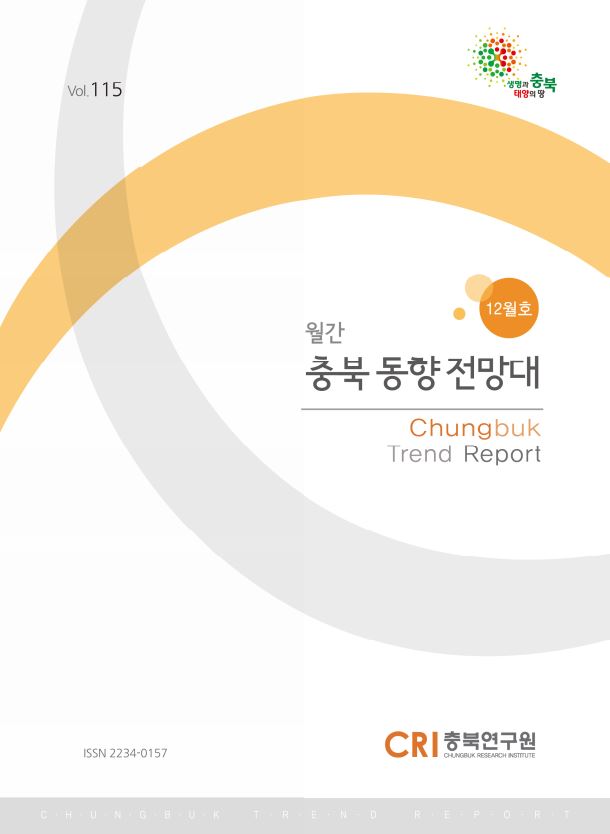 충북과 중앙부처, 타 시도의 정책 및 경제 동향을 종합분석 정리한 전문정보지로 월 1회 발간되었으나 2023.12월을 마지막으로 종간되었습니다. 게시물 검색 등록일순 조회수순 제목연구진 검색 총 150건의 게시물이 있습니다. 2023 2022 2021 2020 2019 2018 2017 2016 2015 2014 2013 2012 2011 게시물 목록 충북 동향 전망대 (2021. 05월호) 관련키워드 충북동향전망대2021.05월호 연구진 : 발행일 : 2021.05 조회수 : 2,335 목차 다운로드 충북 동향 전망대 (2021. 04월호) 관련키워드 충북동향전망대2021.04월호 연구진 : 발행일 : 2021.04 조회수 : 2,299 목차 다운로드 충북 동향 전망대 (2021. 03월호) 관련키워드 충북동향전망대2021.03월호 연구진 : 발행일 : 2021.03 조회수 : 2,178 목차 다운로드 충북 동향 전망대 (2021. 02월호) 관련키워드 충북동향전망대2021.02월호 연구진 : 발행일 : 2021.02 조회수 : 2,043 목차 다운로드 충북 동향 전망대 (2021. 01월호) 관련키워드 충북동향전망대2021.01월호 연구진 : 발행일 : 2021.01 조회수 : 2,044 목차 다운로드 충북 동향 전망대 (2020. 12월호) 관련키워드 충북동향전망대2020.12월호 연구진 : 발행일 : 2020.12 조회수 : 2,027 목차 다운로드 충북 동향 전망대 (2020. 11월호) 관련키워드 충북동향전망대2020.11월호 연구진 : Vol. 114 발행일 : 2020.11 조회수 : 3,420 요약 목차 다운로드 충북 동향 전망대 (2020. 10월호) 관련키워드 충북동향전망대2020.10월호 연구진 : Vol. 113 발행일 : 2020.10 조회수 : 2,716 요약 다운로드 충북 동향 전망대 (2020. 09월호) 관련키워드 충북동향전망대2020.09월호 연구진 : Vol. 112 발행일 : 2020.09 조회수 : 2,575 요약 목차 다운로드 충북 동향 전망대 (2020. 08월호) 관련키워드 충북동향전망대2020.08월호 연구진 : Vol. 111 발행일 : 2020.08 조회수 : 2,861 요약 다운로드 처음 페이지 이전 페이지 1 2 3 4 5 6 7 8 9 10 다음 페이지 다음 10 페이지 끝 페이지