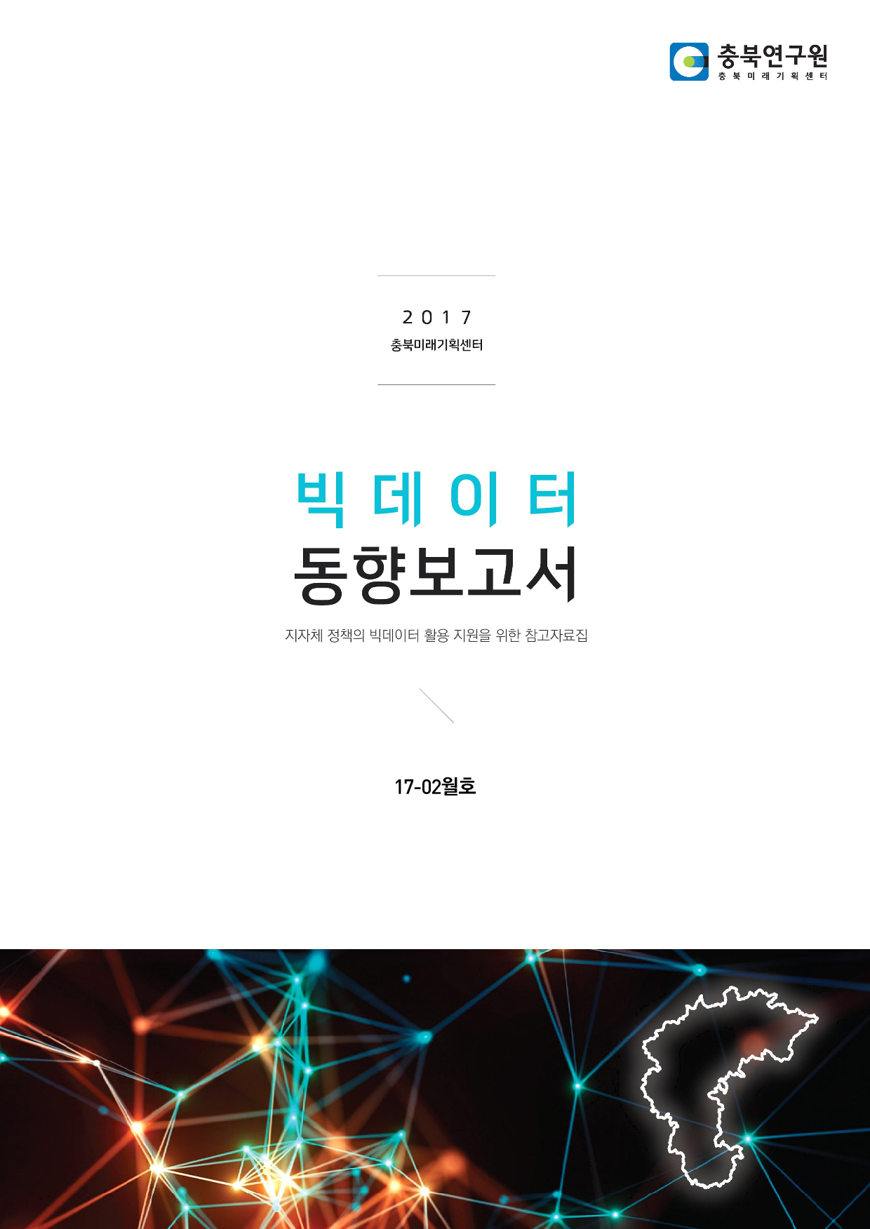 발간물박스 전체연구보고서[종간]정책이슈브리프[종간]연구총서[종간]충북 퓨쳐아이[종간]이슈분석[종간]주간정책[종간]빅데이터동향 충북정책개발센터의 발간물입니다. 게시물 검색 등록일순 조회수순 제목연구진 검색 총 15건의 게시물이 있습니다. 충북정책 2025 2024 2023 2022 2021 2018 2017 2016 2015 2014 2013 2012 게시물 목록 빅데이터 동향보고서 (17-05호) 관련키워드 빅데이터동향보고서1705호 연구진 : 충북미래기획센터 발행일 : 2017 조회수 : 5,164 목차 1. 중앙부처 동향 - 국토부, 드론·빅데이터 활용해 철도 안전 확보- 국토부, ‘한국형 아마존’ 육성위해 화물 빅데이터 구축- 농식품부, 농식품 분야 데이터 지도 구축 - 행자부, 대한민국 공공데이터 개방 및 활용 수준 발표- 환경부, 환경문제를 해결하기 위한 플랫폼 구축 2. 지자체 동향- 전북도, 실국별로 ‘빅데이터 톡톡데이’ 개최- 수원시, 수돗물 공급 전 과정 빅데이터 관리·감시- 울산시, 스마트시티 실현을 위한 마스터플랜- 부산시, 미래먹거리 전략기술 산업 공청회 개최3. 연구원·학계 동향- 한국건강관리협회 마크로젠, 유전체 정보기반 질병예측 빅데이터 구축- SKT 고려대 의료원, AI 병원 설립 4. 민간기업 동향- 농협, 콜센터 빅데이터 시스템 구축 다운로드 빅데이터 동향보고서 (17-04호) 관련키워드 빅데이터동향보고서1704호 연구진 : 충북미래기획센터 발행일 : 2017 조회수 : 5,321 목차 1. 중앙부처 동향 - 행자부, 조류인플루엔자(AI) 예방에 빅데이터 활용 - 농진청, 스마트팜 생산성 향상 모델 개발 - 산업부, 4차 산업혁명 대응을 위한 빅데이터 활용방안 논의 2. 지자체 동향 - 전북도, 빅데이터 활용 중장기 전략 수립 - 서울시-KT, 도시 생활 인구 모델 개발 - 김해시, 2년 연속 행정자치부 빅데이터 표준분석 대상기관 선정 - 원주시, 개방형 IoT 플랫폼 구축 기반 마련 3. 연구원?학계 동향 - 국토연구원, 교통수요 추정방법 개선 방안 제시 4. 민간기업 동향 - 효성, 빅데이터 솔루션을 기반으로 변전소 자산관리솔루션(AHMS) 도입 - SKT, 보안 걱정 없는 블록체인 활용해 빅데이터 사업 주도 - 코웨이, 스마트 영업시스템 개발 5. 국외 동향 - 일본, 기밀 제외 빅데이터 공유 지침 마련 - 미국, 마이크로소프트 社, SaaS 솔루션 ‘IoT Central’ 새롭게 발표 다운로드 빅데이터 동향보고서 (17-03호) 관련키워드 빅데이터동향보고서1703호 연구진 : 충북미래기획센터 발행일 : 2017 조회수 : 5,484 목차 1. 중앙부처 동향 문체부, 기상정보 활용 관광서비스 개발 고용부, 4차산업 분야 자격증 17개 신설 산림청 국립산림과학원, 빅데이터 활용한 산림물지도 시범제작 행자부, 4차 산업혁명 선도할 공공데이터 개방 확대2. 지자체 동향 전북도, 키워드 분석으로 전북의 변화 추이 확인 세종시, 공공 빅데이터 이용 활성화 사업 추진 군포시, 빅데이터 과학행정 구현을 위한 전문교육 시행 충주시, 시민생활 통계자료실 운영 3. 연구원?학계 동향 산업안전보건연구원, 빅데이터 기반 질병발생 연구 진행 서울대 빅데이터연구원장, 대학 지원으로 빅데이터 고급인력 육성 한국표준과학연구원, 의료 측정 데이터 표준화 필요 4. 민간기업 동향 인코어드, 에너지 빅데이터 서비스로 전기요금 절약 충남 매일유업, 불량품 줄이고 유제품 생산량 증가 5. 국외 동향 중국, 핀테크를 통한 금융산업 발전 일본, 빅데이터 지식재산으로 보호·등록 다운로드 빅데이터 동향보고서 (17-02호) 관련키워드 빅데이터동향보고서1702호 연구진 : 충북미래기획센터 발행일 : 2017 조회수 : 5,766 목차 1. 중앙부처 동향 행자부, 빅데이터를 활용 수난 안전사고 예방 국방부, 국방 빅데이터 사업추진 토론회 개최 건보단, 암질환·만성질환 예측으로 2000억원 의료비 절감효과 복지부, 4차 산업혁명 대비 빅데이터 활용 전략 수립 2. 지자체 동향 경기도, 빅데이터로 상권 분석 경남도, 빅데이터 분석으로 응급환자 골든타임 확보 서울시, 긴급복지제도로 취약계층 지원 김해시, 스마트 상수도 관리시스템 구축 3. 연구원·학계 동향 인하대병원, 유전자 빅데이터 기반 정밀의학센터 설립추진 포스텍, 인공지능 전문가과정 협약 계명대, 빅데이터 분석 인재양성을 위한 산학협력 협약 체결 4. 민간기업 동향 ING생명, 보험회사 빅데이터 전략모델 업계와 공유 KT, 빅데이터 활용 농식품 이력 한눈에 확인 삼성카드, ‘스마트알고리즘’으로 소비패턴 분석 5. 국외 동향 미국 PSI 인터내셔널社, 한국에 4차산업혁명 빅데이터 교육센터 설립 추진 중국 BAT, AI·빅데이터 국가연구소 설립 주도 일본, 기업간의 빅데이터 거래 규정 완화 다운로드 빅데이터 동향보고서 (17-01호) 관련키워드 빅데이터동향보고서1701호 연구진 : 충북미래기획센터 발행일 : 2017 조회수 : 5,931 목차 1. 중앙부처 동향 행자부, 2016년 공공 빅데이터 성과 공유대회 개최 행자부, 야간?휴일의 민원 분석하여 민원서비스 개선 고용부, 4차 산업혁명 핵심인력 양성훈련 국토부, 공공데이터와 카카오와의 협약, 더욱 정확한 길 안내 서비스 식약처, 빅데이터와 인공지능이 적용된 의료기기 허가·심사 절차 마련 환경부, 자생생물 빅데이터 정보 통합서비스 개시 2. 지자체 동향 