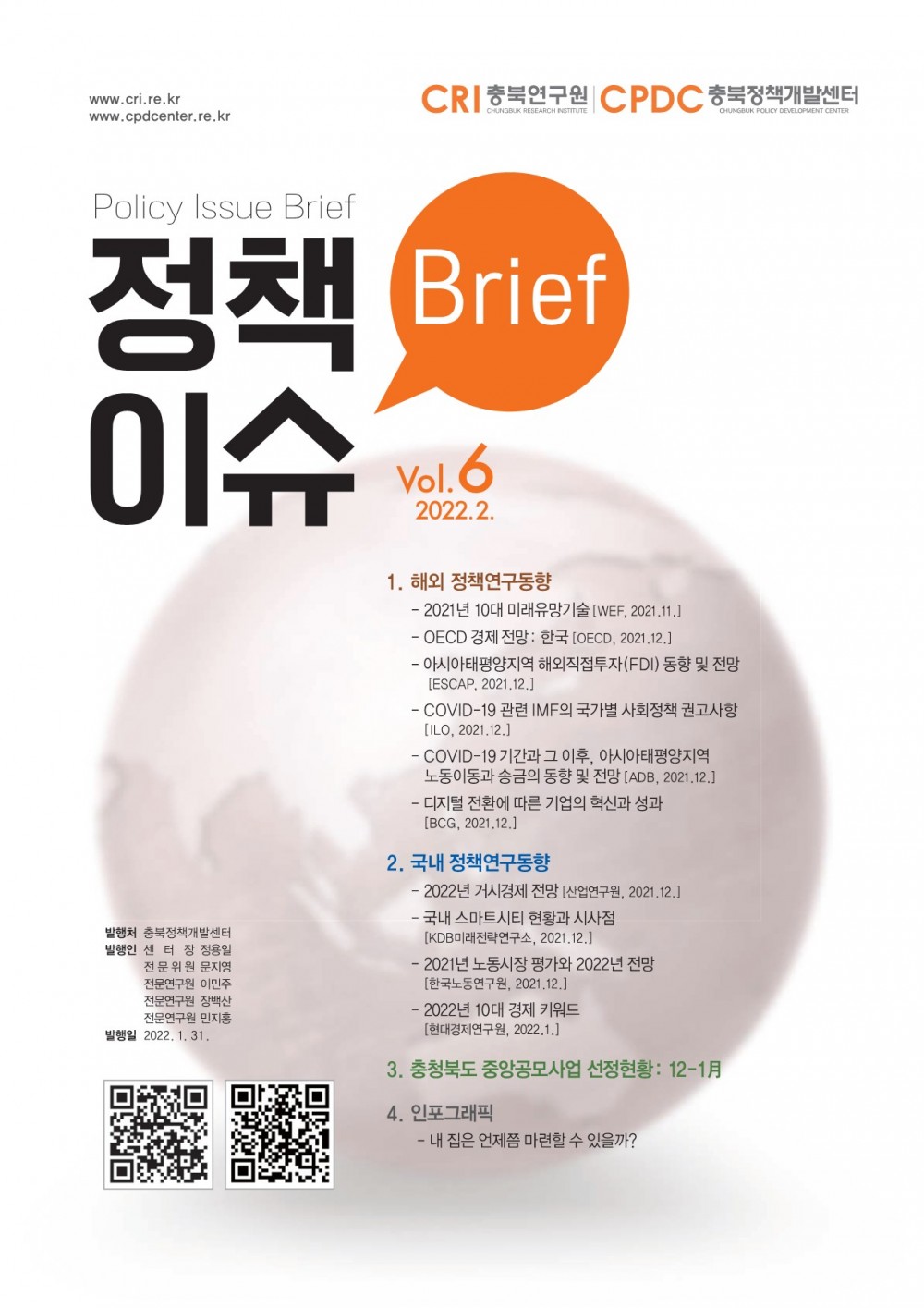 {게시판이름} 상세보기 - 제목, 연구진/발행처, 발행인, 보고서번호, 조회수, 내용, 첨부파일 정보 제공 정책이슈 Brief (Vol.6) 새글핫이슈 연구진/발행처 : 충북정책개발센터 발행일 : 2022.02. 보고서번호 : 조회수 : 3,175 원문 다운로드 이전글 정책이슈 Brief (Vol.7) 다음글 [빅데이터기반정책연구] 02 지표로 보는 충북의 디지털정보격차 목록