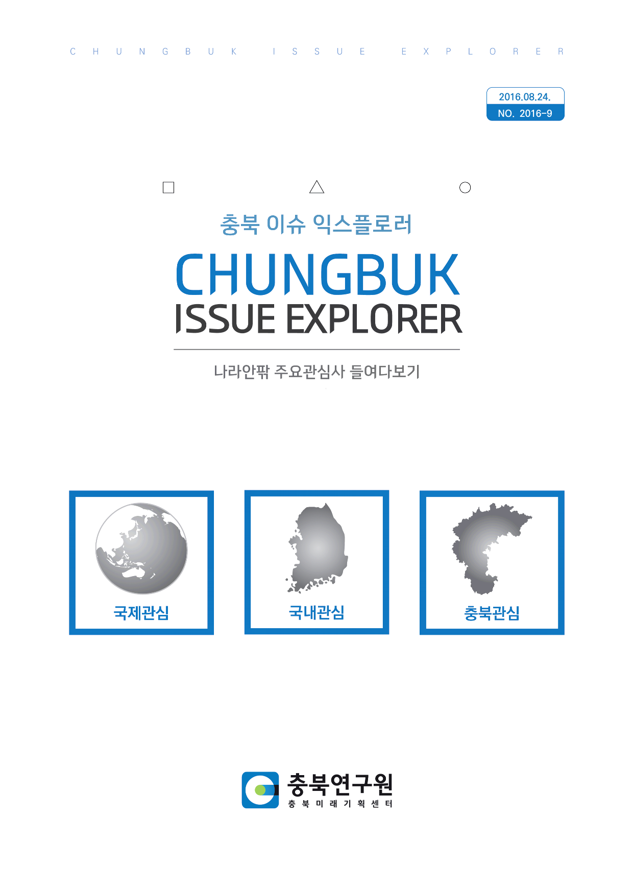 발간물박스 전체연구보고서[종간]정책이슈브리프[종간]연구총서[종간]충북 퓨쳐아이[종간]이슈분석[종간]주간정책[종간]빅데이터동향 충북정책개발센터의 발간물입니다. 게시물 검색 등록일순 조회수순 제목연구진 검색 총 47건의 게시물이 있습니다. 충북정책 2025 2024 2023 2022 2021 2018 2017 2016 2015 2014 2013 2012 게시물 목록 이슈 분석 (No.2016-17) 관련키워드 이슈분석No.201617 연구진 : 충북미래기획센터 발행일 : 2016.12 조회수 : 4,572 목차 Issue 01 : 전국을 강타한 AI, 충북의 대안은? Issue 02 : 전국최초, 충북의 생산적일자리사업 추진, 그 효과는? Issue 03 : 조수피해, 공존의 방법은 없는 것인가? 다운로드 이슈 분석 (No.2016-16) 관련키워드 이슈분석No.201616 연구진 : 충북미래기획센터 발행일 : 2016.12 조회수 : 4,383 목차 Issue 01 : 세종시 개발에 따른 충북 인구유출 우려 Issue 02 : 트럼프의 보호무역주의, 충북의 영향은? 다운로드 충북 이슈 익스플로러 (No.2016-15) 관련키워드 충북이슈익스플로러No.201615 연구진 : 충북미래기획센터 발행일 : 2016 조회수 : 4,774 목차 국제관심 : "일본 기초과학 분야 노벨상 수상, 충북의 기초과학 현황은?" 국내관심 : "가축 전염병 재발시기 도래에 따른 방역대책 필요" 충북관심 : "철도파업, 충북 시멘트업계 울상" 다운로드 충북 이슈 익스플로러 (No.2016-14) 관련키워드 충북이슈익스플로러No.201614 연구진 : 충북미래기획센터 발행일 : 2016.09 조회수 : 4,614 목차 [국제관심] - 아세안 시장에서의 한.중 수출경쟁 심화에 따른 충북의 대응 [국내관심] - 이 사회의 어두운 그림자, 노인 자살률 증가 [충북관심] - 충북 식품산업 집중육성 필요 다운로드 충북 이슈 익스플로러 (No.2016-13) 관련키워드 충북이슈익스플로러No.201613 연구진 : 충북미래기획센터 발행일 : 2016.09 조회수 : 4,121 목차 국제관심 : "세계적으로 증가하고 있는 아동비만" 국내관심 : "도입 가능성 높아진 고향세, 충북의 대응방향" 충북관심 : "충북, 가을철 농업재해로 몸살" 다운로드 충북 이슈 익스플로러 (No.2016-12) 관련키워드 충북이슈익스플로러No.201612 연구진 : 충북미래기획센터 발행일 : 2016.09 조회수 : 4,080 목차 국제관심 : "반세계화와 소득 불평등, 충북에 주는 시사점" 국내관심 : "한진해운 사태에 따른 충북의 대응방안" 충북관심 : "끊이지 않는 장애인 학대, 이번엔 타이어노예" 다운로드 충북 이슈 익스플로러 (No.2016-11) 관련키워드 충북이슈익스플로러No.201611 연구진 : 충북미래기획센터 발행일 : 2016.09 조회수 : 4,187 목차 국제관심 : "한국, 보건의료산업 러시아 극동지역 진출" 국내관심 : "C형간염 집단감염" 충북관심 : "속리산 관광객 급감에 따른 법주사 관람료 폐지" 다운로드 충북 이슈 익스플로러 (No.2016-10) 관련키워드 충북이슈익스플로러No.201610 연구진 : 충북미래기획센터 발행일 : 2016.09 조회수 : 4,094 목차 <국제관심> - 한.일 위안부 문제 합의 <국내관심> - 충북 지하안전 상태는 어떠한가? <충북관심> - 아시아나항콩 MRO사업 포기 충북의 대응방향은? 다운로드 충북 이슈 익스플로러 (No.2016-9) 관련키워드 충북이슈익스플로러No.20169 연구진 : 충북미래기획센터 발행일 : 2016.08 조회수 : 4,236 목차 <국제관심> - 러시아인들의 인삼사랑 <국내관심> - 식중독.콜레라 폭염속 건강관리 필수 <충북관심> - 충북-경남, MRO단지 유치경쟁 다운로드 충북 이슈 익스플로러 (No.2016-8) 관련키워드 충북이슈익스플로러No.20168 연구진 : 충북미래기획센터 발행일 : 2016.08 조회수 : 4,438 목차 <국제관심> - 리우올림픽 '부항' 인기로 한의학 관심 증가 전망 <국내관심> - 누진세 부담으로 태양광 설치 증가 전망 <충북관심> - 청주 무예마스터십, 후속 발전방안 마련 필요 다운로드 처음 페이지 이전 페이지 1 2 3 4 5 끝 페이지