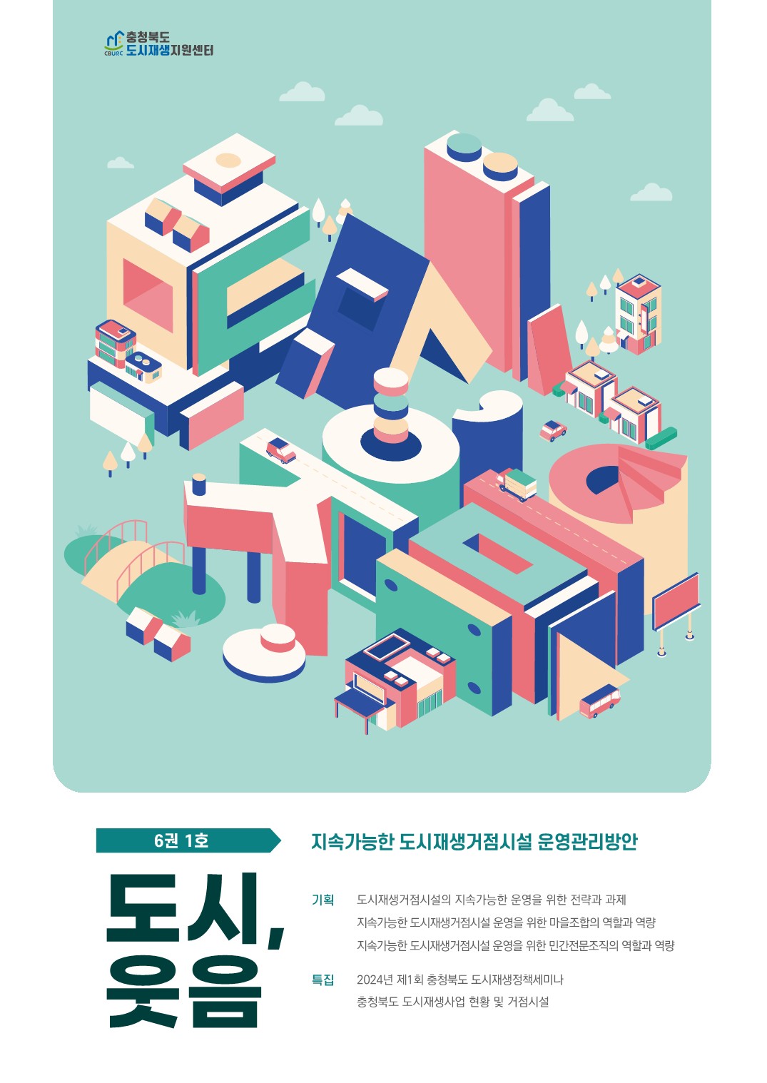 충북도시재생지원센터의 발간물입니다. 게시물 검색 등록일순 조회수순 제목연구진 검색 총 18건의 게시물이 있습니다. 2024 2023 2022 2021 2020 2019 게시물 목록 도시,웃음-6권 2호(24.12) 관련키워드 도시재생정책방향뉴빌리지사업지역활성화지원센터도시농촌상행발전농촌공간재구조화도시재생사업도시재생교육 연구진 : 충청북도도시재생지원센터 발행일 : 2024.12. 조회수 : 736 요약 *2022년까지 연 4회 분기별로 발행되었던 도시, 웃음 정기간행물이 2023년부터 연 2회 반기별로 조정되었습니다. 목차 [주제]: 충청북도 도시재생 정책 방향[목차]권두언도시재생정책의 새로운 트렌드 뉴:빌리지사업에 대한 기대와 우려 - 음성군 지역활성화지원센터 김영환 센터장1. 기획01. 서울형 뉴:빌리지사업(휴먼타운2.0) - 서울특별시 주거환경개선과 최재준 과장02. 뉴:빌리지사업의 동향과 지역의 대응 - 주택도시보증공사 도시정비처 김재승 과장03. 도시와 농촌의 상생발전을 위한 농촌공간재구조화 - 충북연구원 지역공간연구부 한승석 연구위원2. 특집01. 제2회 충청북도 도시재생정책세미나 - 2024 도시재생 트렌드02. 충청북도 도시재생지원센터 컨설팅 운영 - TRACK1. 도시재생 전(全)주기 맞춤형 컨설팅 - TRACK2. 도시재생사업 신규선정을 위한 공모대응 컨설팅03. 충청북도 도시재생교육 - 2024년 도시재생 실무교육(기본, 이론, 심화)3. 도시재생정책동향01. 2024년 하반기 도시재생사업 선정4. 충북 도시재생 소식01. 충청북도 도시재생 사업현황02. 충청북도 도시재생지원센터 소식 다운로드 도시,웃음-6권 1호(24.06) 관련키워드 도시재생거점시설도시재생정책세미나도시재생사업도시재생동향 연구진 : 충청북도도시재생지원센터 발행일 : 2024.06. 조회수 : 1,244 요약 주제: 지속가능한 도시재생거점시설 운영관리방안 목차 주제: 지속가능한 도시재생거점시설 운영관리방안CONTENTS[권두언]지역 활성화를 위한 도시재생거점시설 · 충청북도 도시재생지원센터 변혜선 센터장1. 기획01. 도시재생거점시설의 지속가능한 운영을 위한 전략과 과제 · 건축공간연구원 장민영 연구위원 02. 지속가능한 도시재생거점시설운영을 위한 마을조합의 역할과 역량 : 오래달리기 재생사업, 이제는 거점시설에 함께 모여 도약을 준비할 때 · 구루물마을관리사회적협동조합 정예숙 이사장 03. 지속가능한 도시재생거점시설운영을 위한 민간전문조직의 역할과 역량 : 도시재생거점시설의 현실적인 운영방안 · 두잉지 프로젝트 이정주 대표2. 특집01. 2024년 제1회 충청북도 도시재생정책세미나 : 충청북도 도시재생거점시설 운영관리 방안02. 충청북도 도시재생사업 및 거점시설 ①청주시 도시재생거점시설 운영관리 · 청주시 도시재생지원센터 박소연 팀장 ②충주시 도시재생거점시설 운영관리 · 충주시 도시재생지원센터 최판길 센터장 ③제천시 도시재생거점시설 운영관리 · 제천시 도시재생지원센터 이재경 센터장3. 도시재생 동향01. 도시 공간·거주·품격 3대 혁신 방안 - 노후 저층주거지 획기적 개선 : [뉴:빌리지]사업 도입 - 주거지 정비 사각지대 해소 - 풀뿌리 상권 활성화4. 충북 도시재생 소식01. 충청북도 도시재생사업현황02. 충청북도 도시재생지원센터 소식 다운로드 도시,웃음-5권 2호(23.12) 관련키워드 도시재생도시재생사후관리마관리도시재생정책세미나충북생활도시동향충청북도도시재생 연구진 : 충청북도도시재생지원센터 발행일 : 2023.12. 조회수 : 1,453 요약 *2022년까지 연 4회 분기별로 발행되었던 도시, 웃음 정기간행물이 2023년부터 연 2회 반기별로 조정되었습니다. 목차 CONTENTS[권두언]도시재생의 지난 10년과 미래 10년의 방향 / 06한국도시재생학회 회장 김항집[기획]▷ 듣다- 도시재생사업, 4년을 톺아보기 / 10 전우좌후협동조합 이사장 / (전)서울시 도시재생지원센터단장 윤전우- 도시재생 사후관리 조례, 의미와 과제 / 16 제주도시재생지원센터 원장 홍명환▷ 말하다 : INTERVIEW- 앞으로의 마을관리사회적협동조합의 역할과 역량 / 19 사회적협동조합 충북사회적경제센터 사무국장 배성연[특집]- 2023년 제2회 충청북도 도시재생정책세미나 / 24 : 충청북도 노후주거지 재생을 위한 재생X정비 연계 방안- 생기로운 충북생활 (청주, 충주, 제천 거점시설 알아보기) / 28 충청북도도시재생지원센터 인턴 박수빈·박채린[도시동향]- 중앙정부 정책동향 / 36- 해외도시 정책동향 / 44[충북 도시재생 소식]충청북도 도시재생사업현황 / 50충청북도 도시재생센터소식 / 54 다운로드 도시,웃음-5권 1호(23.06) 관련키워드 도시재생도시혁신지방도시도시재생혁신맹은영지역활성화도시동향충청북도도시재생 연구진 : 충청북도도시재생지원센터 발행일 : 2023.06. 조회수 : 1,501 요약 충청북도 도시재생이야기 :) *2022년까지 연 4회 분기별로 발행되었던 도시, 웃음 정기간행물이 2023년부터 연 2회 반기별로 조정되었습니다. 목차 [권두언]앞으로의 도시재생 / 06 전 국토교통부 도시재생사업기획단장 김상석[기획]▷ 듣다- 도시재생의 새로운 흐름, 도시혁신 / 10 LH 토지주택연구원 연구위원 이영은- 지방도시에서의 도시재생 / 14 청주대학교 조경도시학과 교수 김영환▷ 말