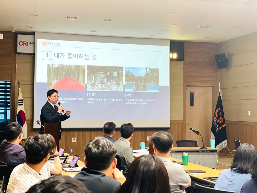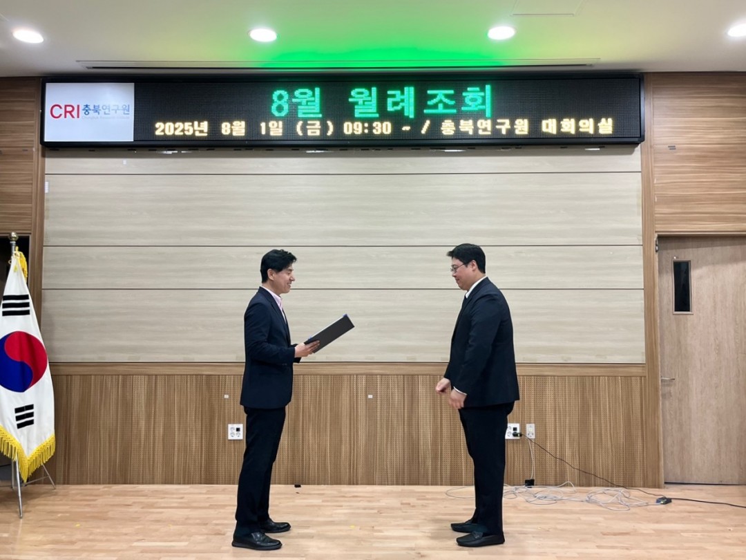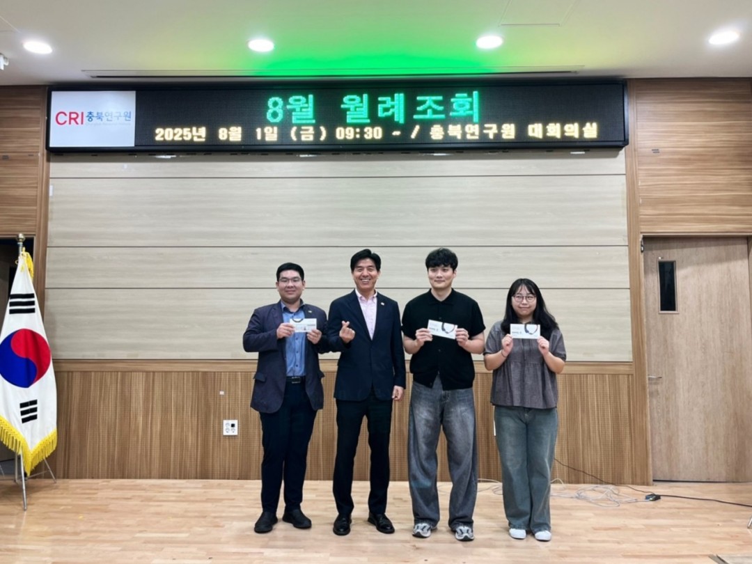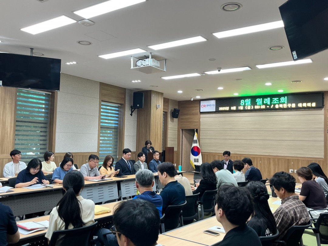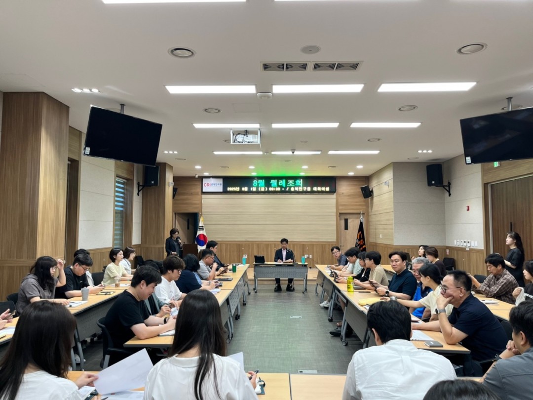 ◎ 일 시 : 2025. 08. 01.(금) 09:30~ ◎ 장 소 : 충북연구원 1층 대회의실 ◎ 내 용 : 8월 신규 직원 임용식, 주요 업무 보고 및 공지사항, 임직원 생일자 축하 등 |
