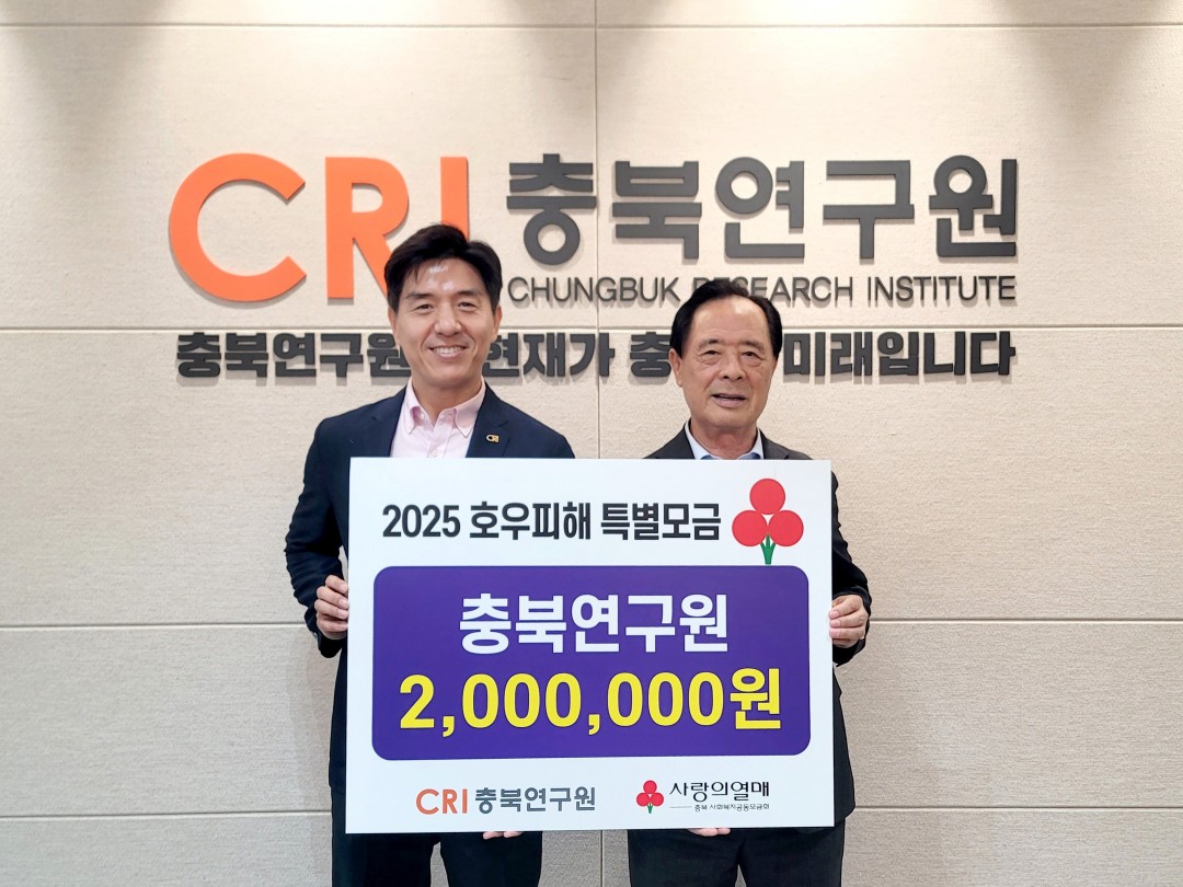 {게시판이름} 상세보기 - 제목, 작성일, 조회수, 사진 정보 제공 2025.08.07. 호우피해 특별모금 새글핫이슈 작성일 : 25-10-20 17:22 조회수 : 11 사진 : 1 ◎ 일 시 : 2025. 08. 07.(목)◎ 장 소 : 충북연구원◎ 내 용 : 2025 호우피해 특별모금 {게시판이름} 상세보기 - 첨부파일 정보 제공 첨부파일 250807_호우피해 특별모금.jpg 이전글 2025.08.23. 일손이음 봉사활동 다음글 2025.08.01. 8월 월례조회 목록