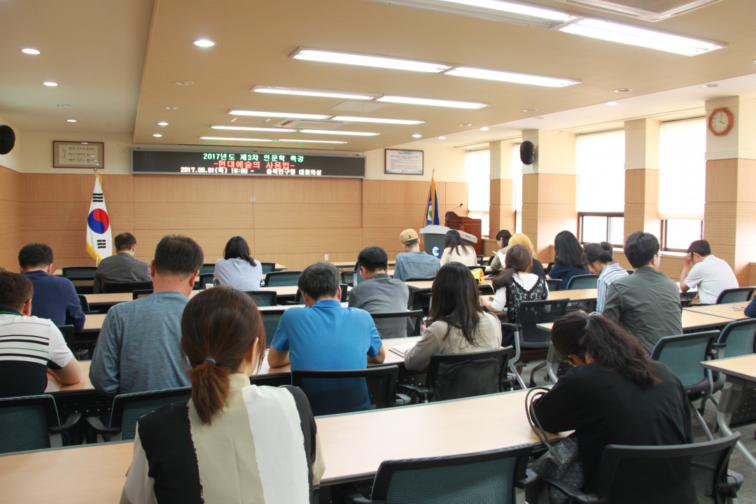 {게시판이름} 상세보기 - 제목, 작성일, 조회수, 사진 정보 제공 2017년도 제3차 인문학 특강 새글핫이슈 작성일 : 17-06-02 21:08 조회수 : 6,557 사진 : 3 -일시 : 2017년 6월 1일 16:00 -장소 : 대회의실 -강의명 : 현대예술의 사용법 -강사 : 홍명섭 {게시판이름} 상세보기 - 첨부파일 정보 제공 첨부파일 IMG_3854.JPG IMG_3859.JPG IMG_3863.JPG 이전글 충북연구원-충주상공회의소 MOU 다음글 2017년 6월 월례조회 목록