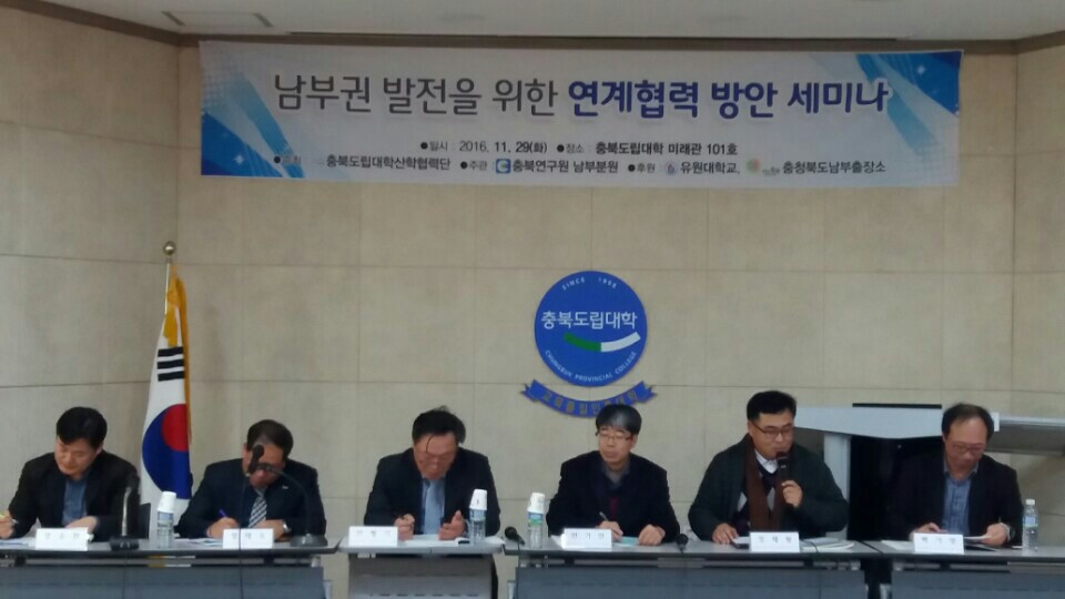 | 충북연구원 남부분원-충북도립대학산학협력단 교류 및 협력에 관한 업무협약식 |