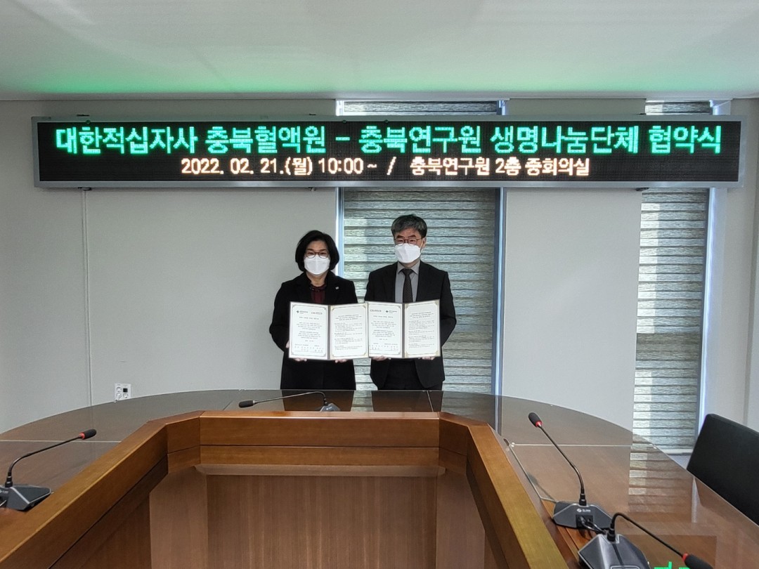 | 2022.02.21 충북혈액원-충북연구원, 생명 나눔 협약 체결 및 단체 헌혈 추진 |