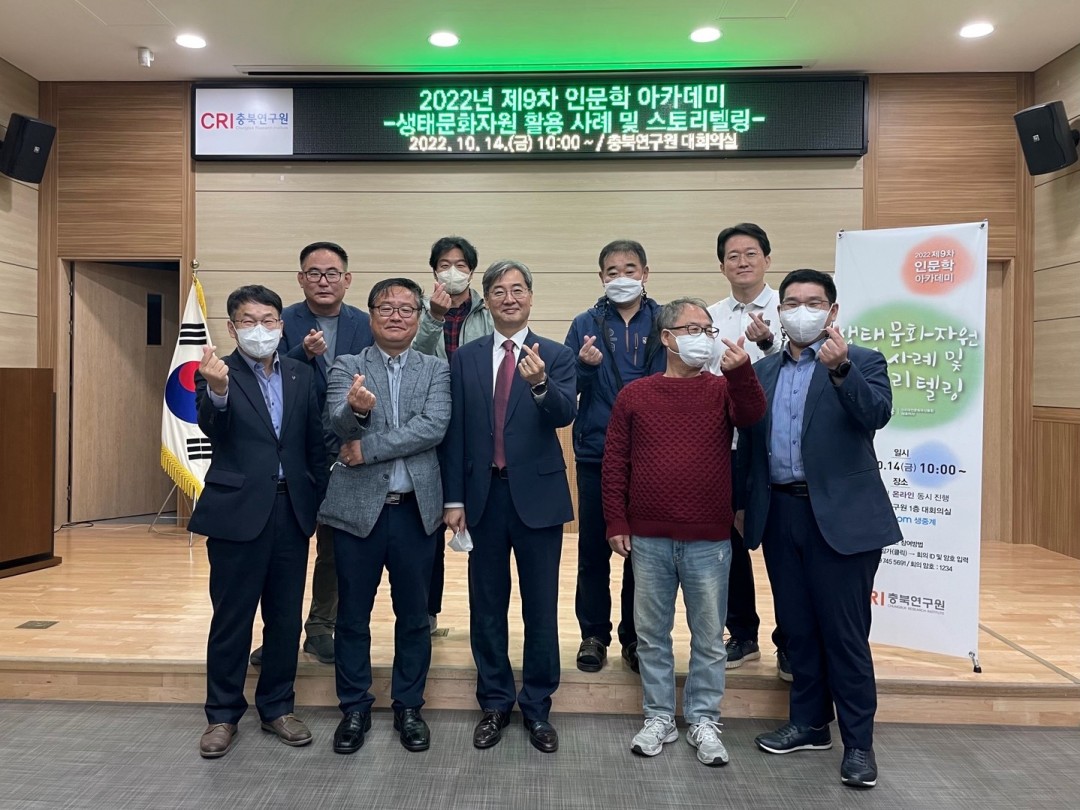 ◎ 일 시 : 2022. 10. 14.(금), 10:00~11:30 ◎ 장 소 : 충북연구원 1층 대회의실 / 온라인 - ZOOM ◎ 강연자 : 안여종 (사)대전문화유산울림 대표이사 ◎ 내 용 : 생태문화자원 활용 사례 및 스토리텔링 |