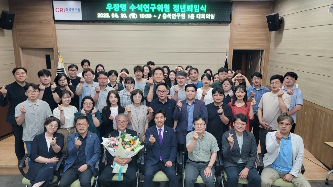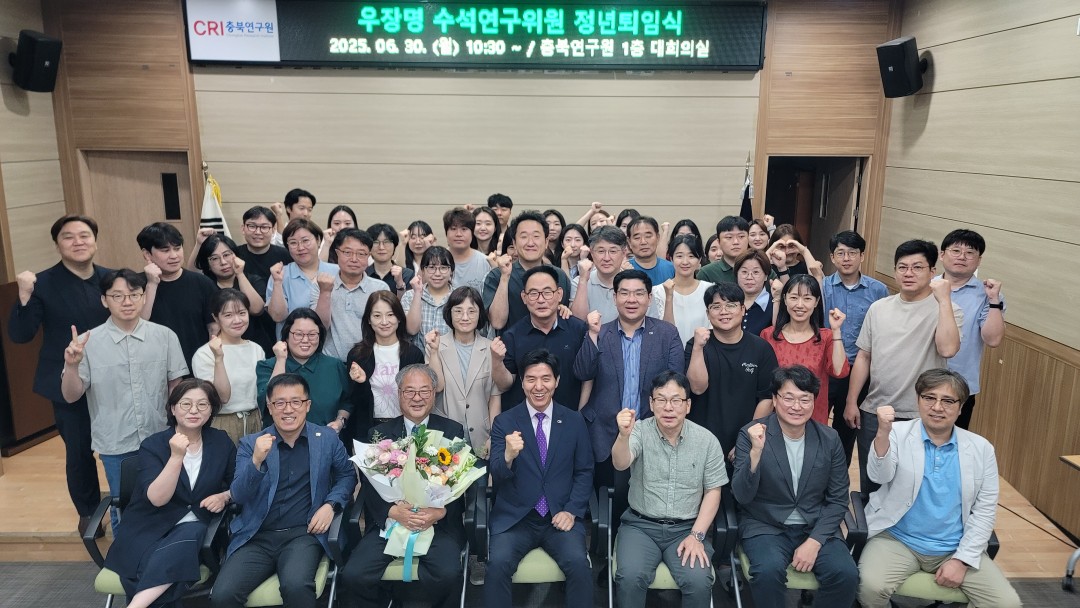 {게시판이름} 상세보기 - 제목, 작성일, 조회수, 사진 정보 제공 2025.06.30. 우장명 수석연구위원 퇴임식 새글핫이슈 작성일 : 25-10-09 19:00 조회수 : 57 사진 : 9 ◎ 일 시 : 2025. 06. 30.(월)◎ 장 소 : 충북연구원 1층 대회의실◎ 내 용 : 우장명 수석연구위원 퇴임식 {게시판이름} 상세보기 - 첨부파일 정보 제공 첨부파일 250630_우장명 수석연구위원 퇴임식-01.jpg 250630_우장명 수석연구위원 퇴임식-02.jpg 250630_우장명 수석연구위원 퇴임식-03.jpg 250630_우장명 수석연구위원 퇴임식-04.jpg 250630_우장명 수석연구위원 퇴임식-05.jpg 250630_우장명 수석연구위원 퇴임식-06.jpg 250630_우장명 수석연구위원 퇴임식-07.jpg 250630_우장명 수석연구위원 퇴임식-08.jpg 250630_우장명 수석연구위원 퇴임식-09.jpg 이전글 2025.07.07. 충북 민선 8기 4년차와 미래전략 토론회 "국토의 중심 충북의 내일을 그리다" 다음글 2025.07.03. 2025 충북 세계 인문사회 학술대회 목록