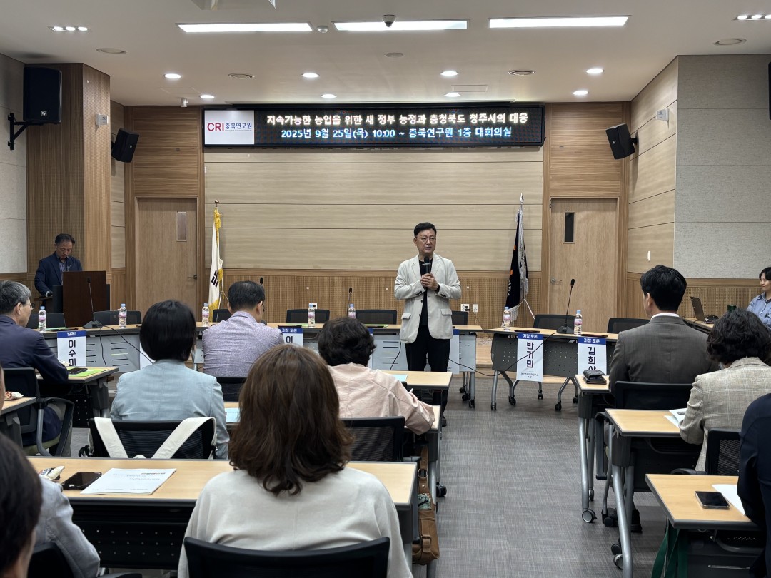 ◎ 일 시 : 2025.09.25.(목) 10:00~ ◎ 장 소 : 충북연구원 1층 대회의실 ◎ 내 용 : 지속가능한 농업을 위한 새 정부 농정과 충청북도 청주시의 대응 |
