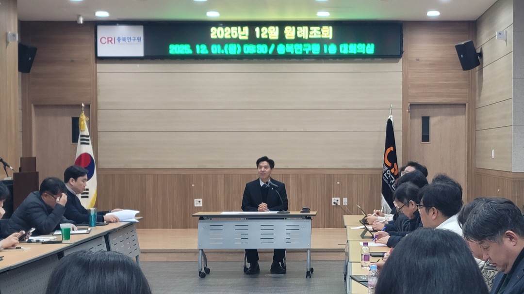 ◎ 일 시 : 2025.12.01.(월) 09:30~ ◎ 장 소 : 충북연구원 1층 대회의 ◎ 내 용 : 12월 직원 생일자 격려, 제120차 정기이사회 개최 안내, 25년 하반기 정년퇴직자 퇴임식 안내 등 |